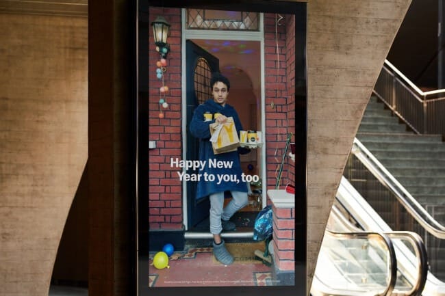 Putting aside ‘I’m loving it’ or ‘Ronald McDonald’ for realism, each OOH ad features someone receiving a McDonald’s delivery in a dressing gown after a particularly enjoyable New Year’s Eve. Simply captioned with ‘Happy New Year to You Too’, the ads promote McDonald’s delivery on a day that must be a golden (arched) opportunity – while also acknowledging the realism around the product.