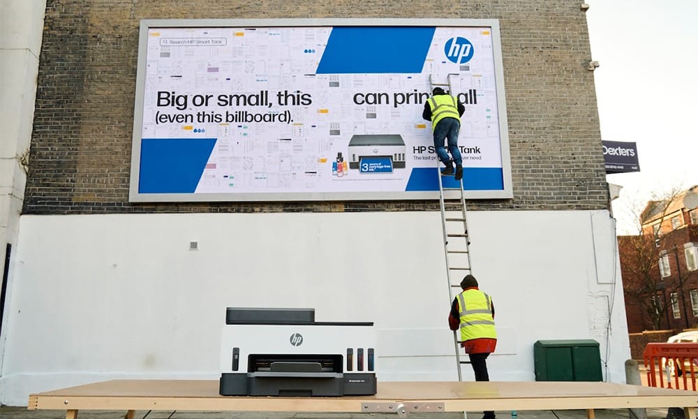 Printers don’t get a lot of love until you need one. Known more for the spiralling cost of ink than for quality in recent times, HP took a novel approach to drive interest in its new ‘Smart Tank’ cartridge free series. It printed out the billboard to promote it. Claiming three years of cartridge free ink use, the printer created its own OOH site in South London, using 319 individual A4 sheets printed live on the street. The activation may make professional printers shudder, but its creation and the content around it does longevity better than normal printer advertising.